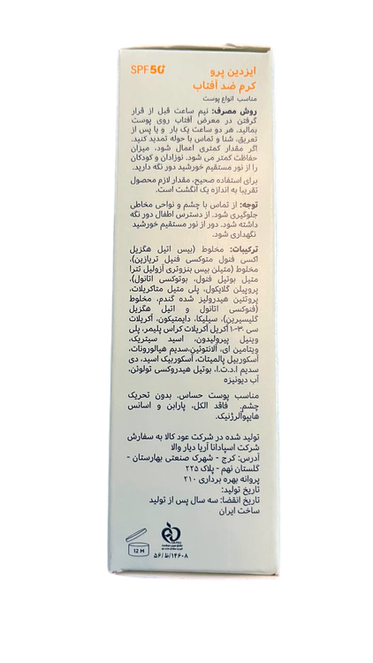 وضیحات محصول: کرم ضد آفتاب ایزدین پرو بیرنگ SPF 50+