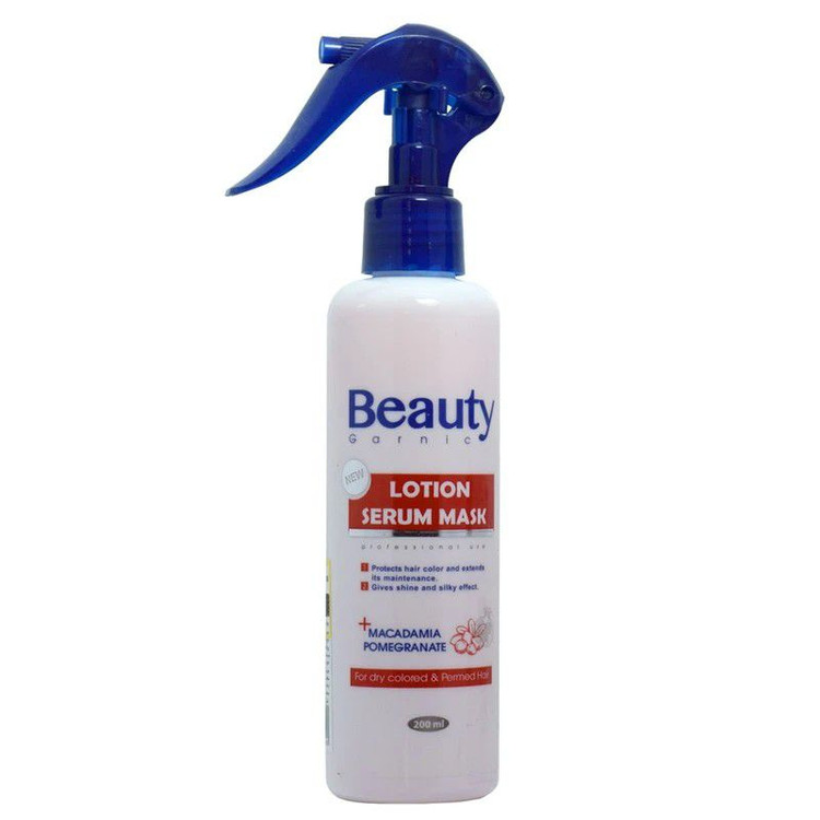 لوسیون تقویت کننده مو بیوتی حاوی انار و ماکادمیا که برای موهای رنگ شده یا فر استفاده می شود.