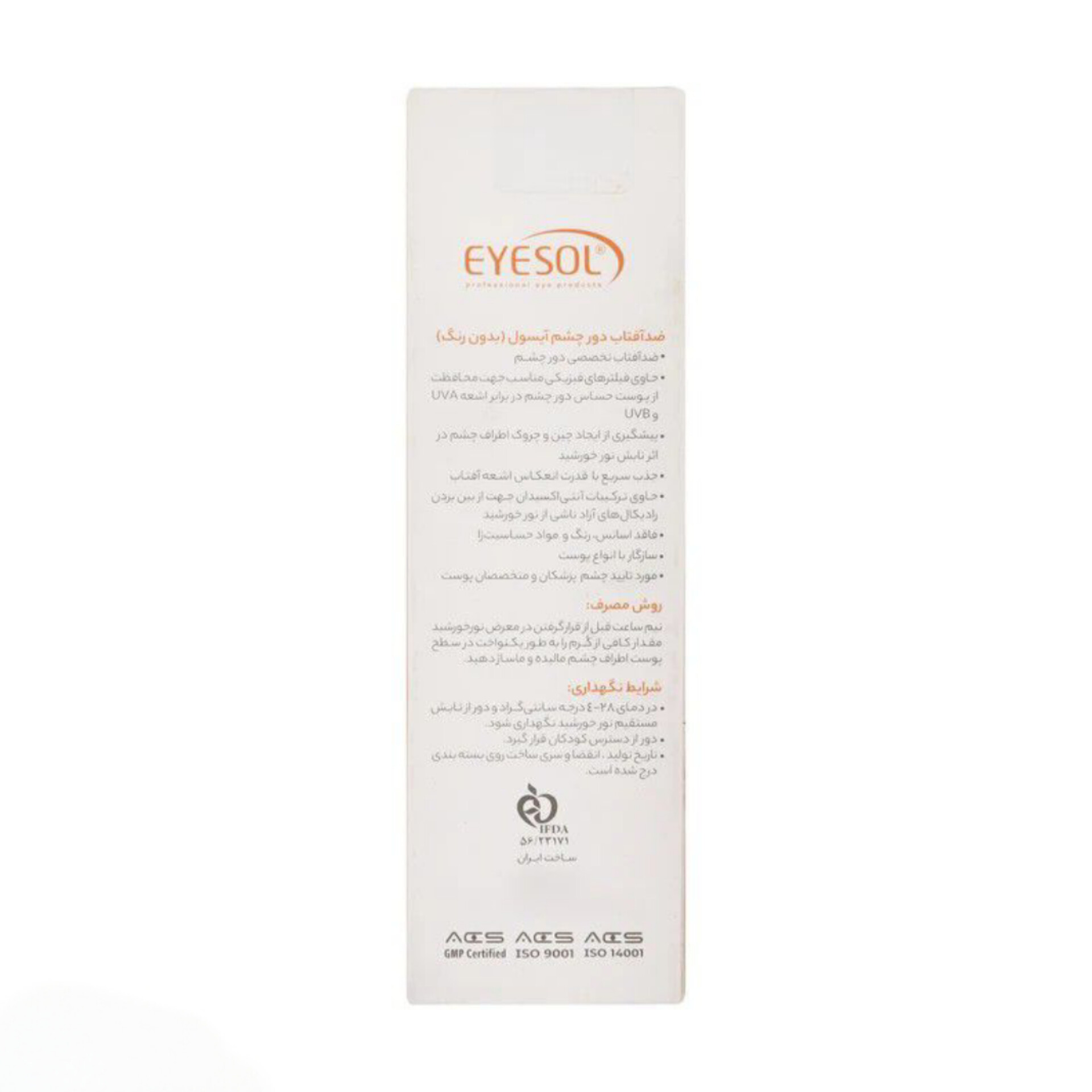 ضدآفتاب دور چشم آیسول بدون رنگ حجم ۱۵میل