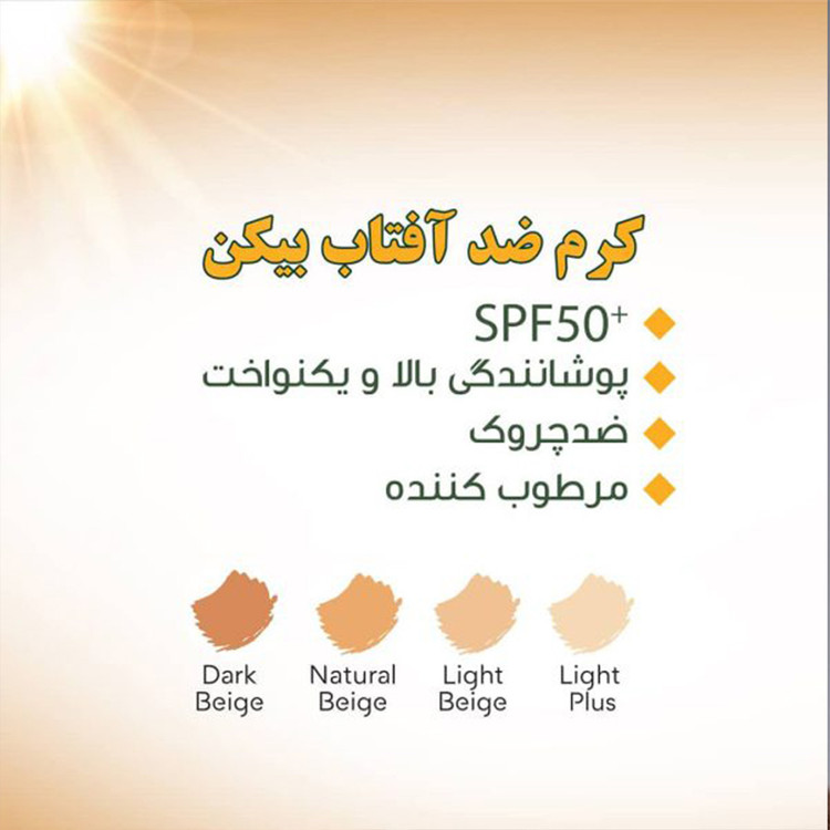 کرم ضد آفتاب بیکن محافظت بالا: ضد آفتاب بیکن با SPF 50 از پوست شما در برابر اشعههای مضر UVA و UVB محافظت میکند. پوشش دهی بالا: این ضد آفتاب مانند یک کرم پودر عمل میکند و میتواند عیوب پوست را به خوبی پوشش دهد. مناسب برای انواع پوست: ضد آفتاب بیکن در دو نوع مخصوص پوستهای چرب و خشک تولید شده است.