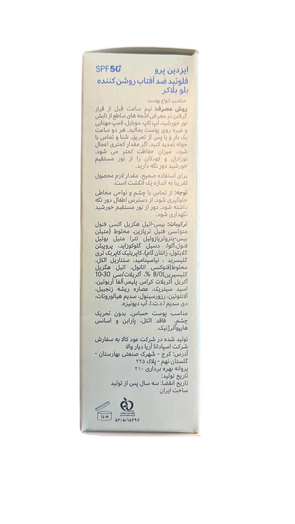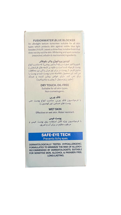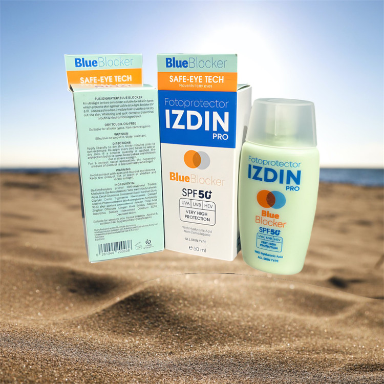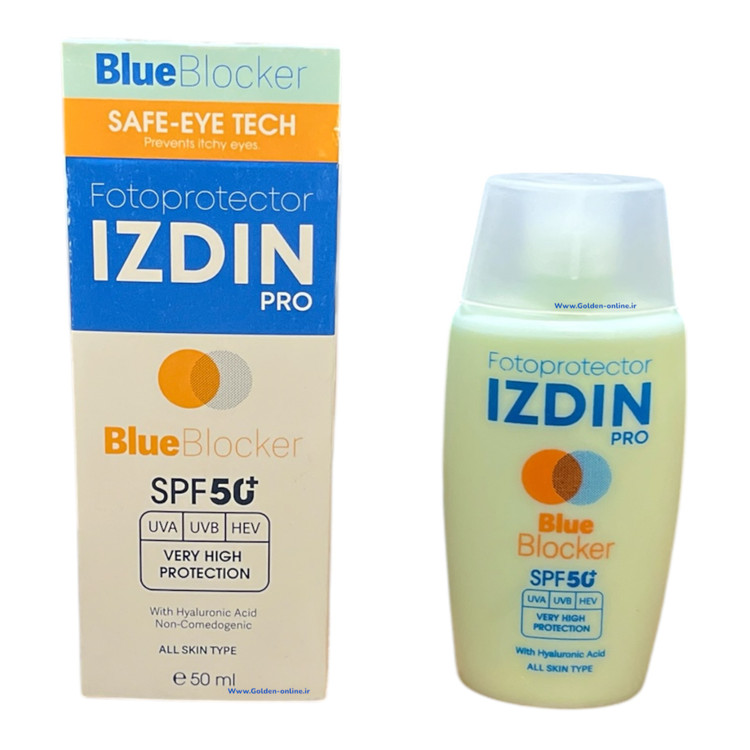 ضد آفتاب فیوژن واتر blue blocker ایزدین پرو با SPF50 علاوه بر محافظت در برابر اشعههای فرابنفش و مادون قرمز از پوست شما در برابر اشعههای نور مرئی یا نور آبی نیز محافظت میکند.